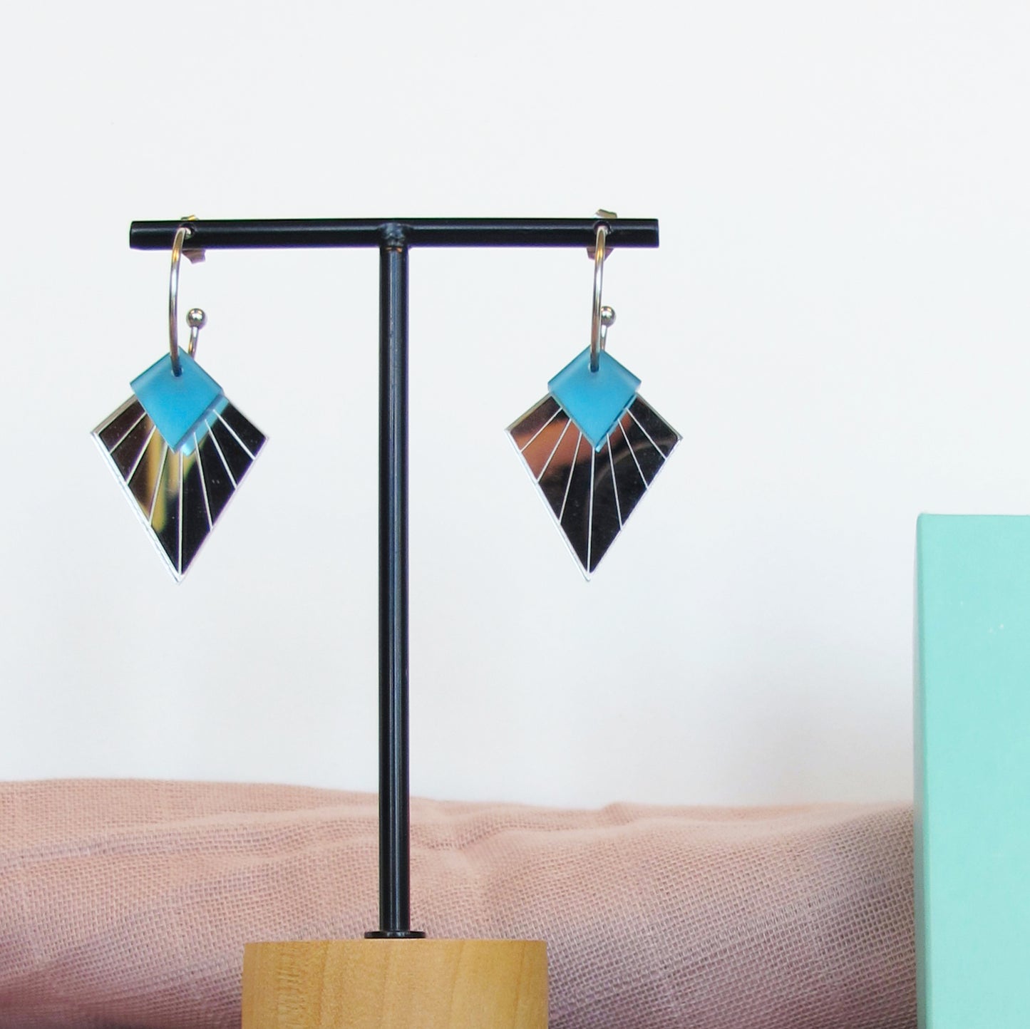 Dit is de zilveren grote ruit met een pauw blauwe kleine ruit.